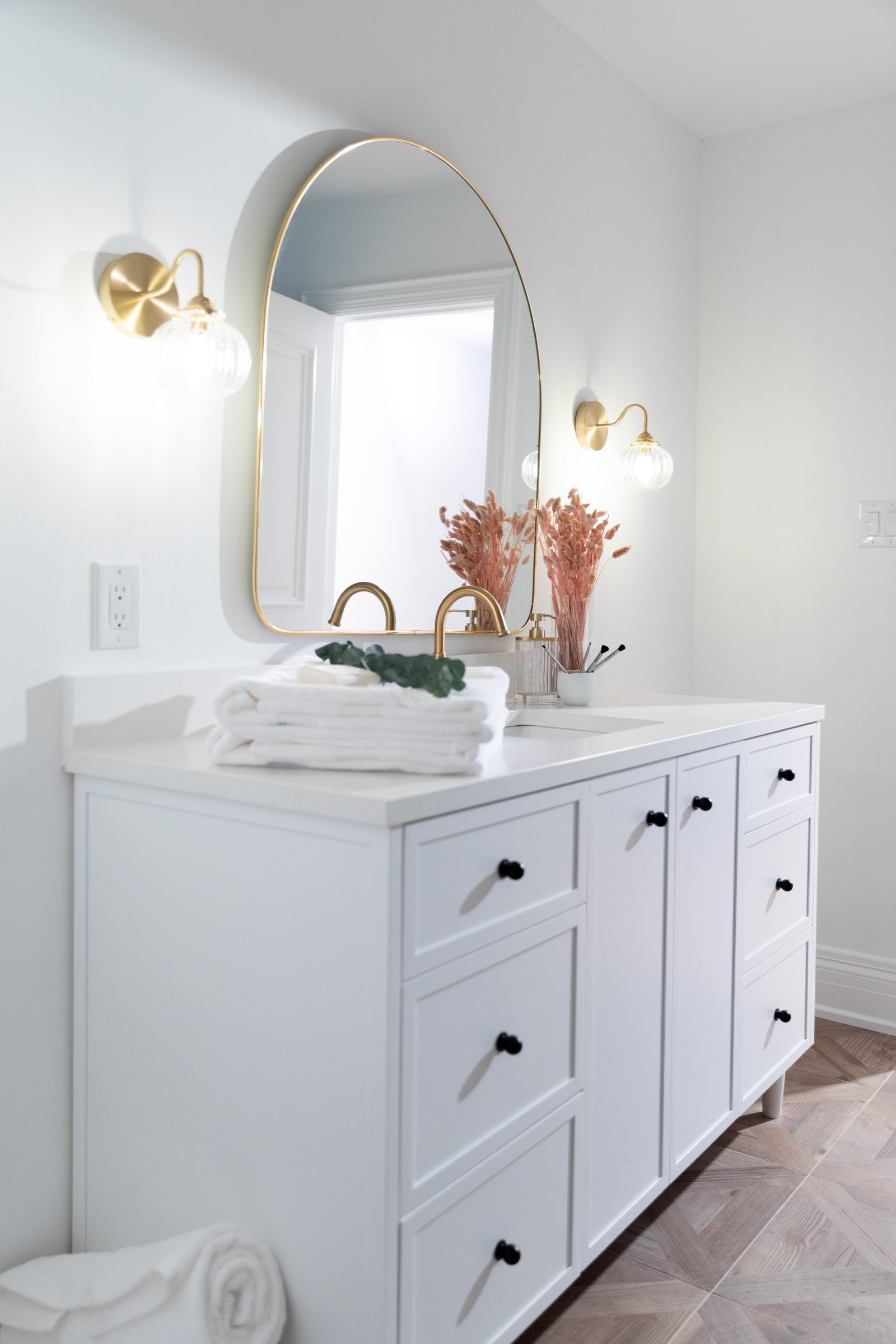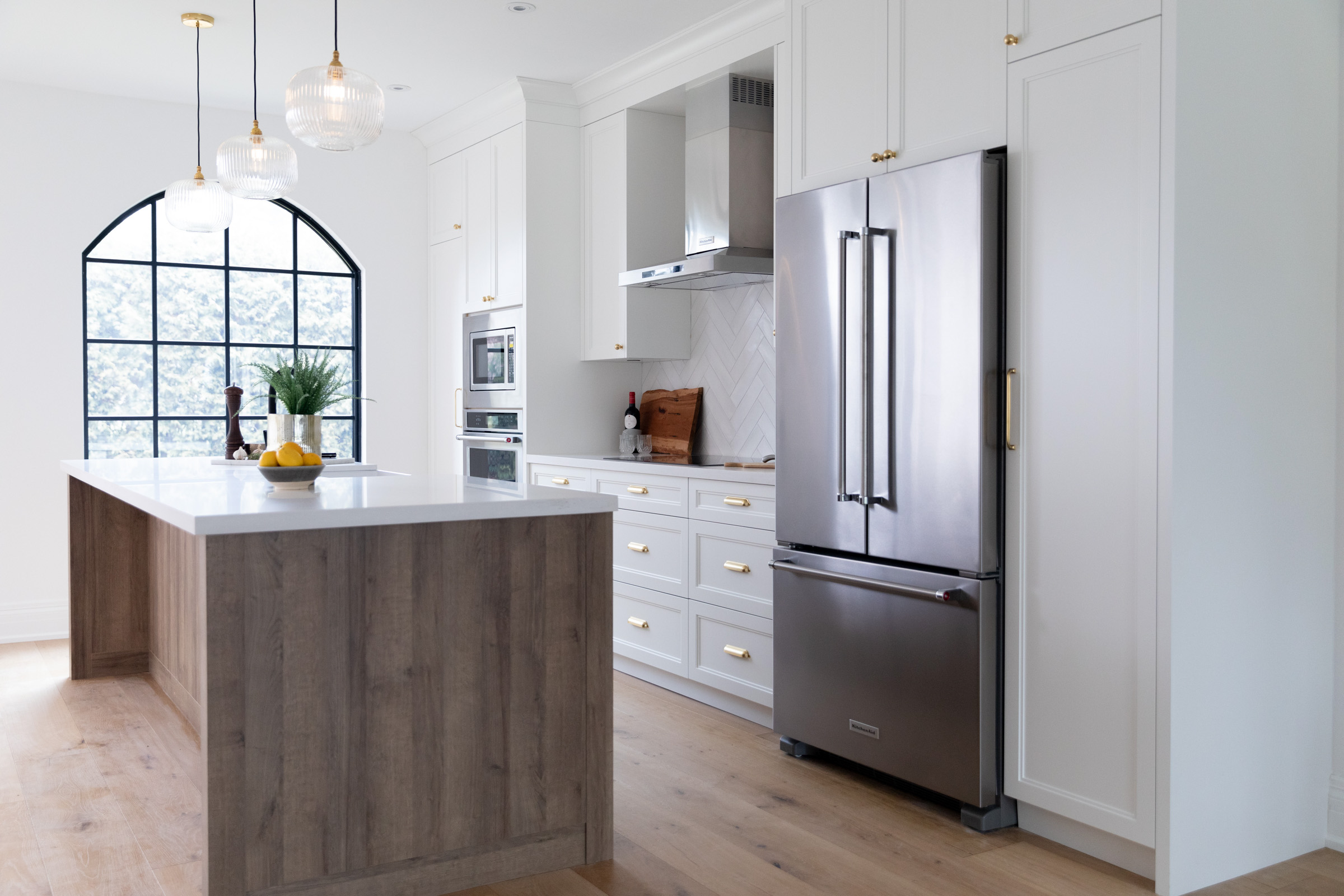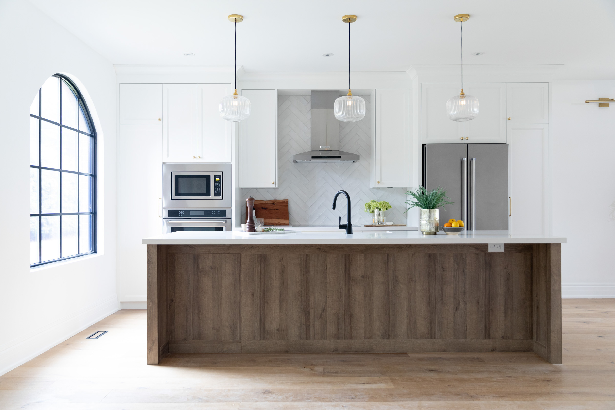 Hello #take2oneunice! This full gut-renovation in North York was designed with real family life in mind. With small children in the mix, our goal was to create a space that felt open, functional, and calm— without sacrificing style. We provided detailed floor plan drawings to reimagine the home’s flow, and partnered with a trusted contractor to bring the vision to life. Clean lines, warm woods, and soft, durable finishes came together to create a contemporary space that’s as beautiful as it is family-friendly. Thoughtfully placed arches were introduced throughout to soften transitions between rooms and add a subtle, sculptural design element that ties the whole home together